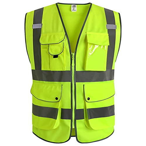 The JKSafety 9 Pockets Class 2 High Visibility Zipper Front Safety Vest is a must-have for anyone working in safety-critical environments. Made from 100% breathable polyester, this vest is not only durable but also lightweight and machine washable for easy care. Its high visibility neon yellow color, complemented by two-inch reflective strips, ensures you are seen from all angles, day or night. Featuring 9 multi-function pockets with zipper closures, it provides ample storage for tools and personal items. Perfect for various industries including construction, public safety, and outdoor activities like cycling and hiking, this vest meets ANSI/ISEA standards, guaranteeing quality you can trust. Grab yours today for ultimate safety!