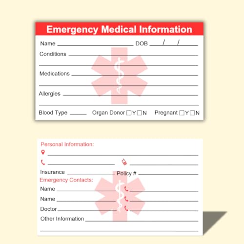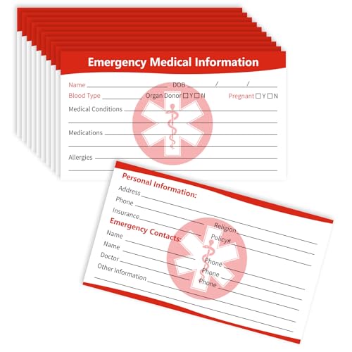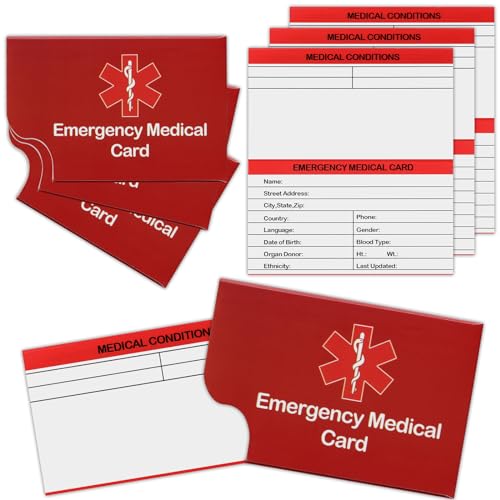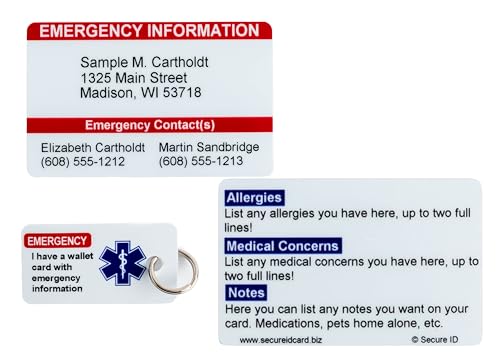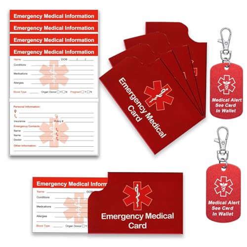 The 4 Pack Medical Alert Emergency Contact Information ID Card set is an essential safety tool for individuals with medical conditions. This package includes 4 medical alert wallet cards, 4 card holders, and 2 keychain tags, ensuring you always have your vital information at hand. Each card is made from durable paper, providing clear visibility for emergency personnel. The compact size allows for easy storage in wallets or on phones, making it perfect for travelers and anyone who values their safety. In case of emergencies due to diabetes, allergies, or other health issues, these cards communicate crucial details quickly, offering peace of mind for you and your loved ones.