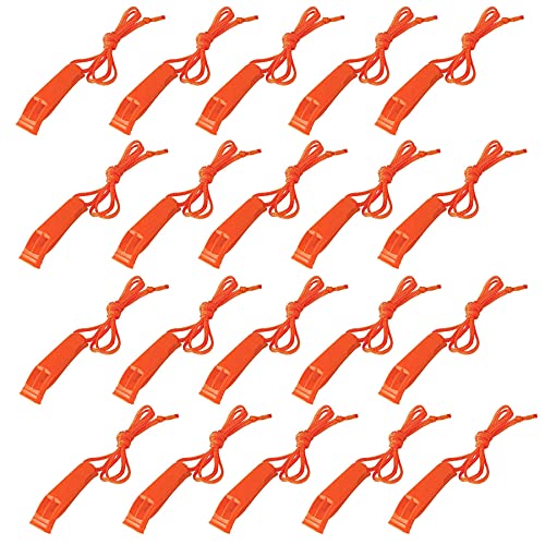 The AUGSUN 20 Pcs Safety Whistle set is an essential tool for anyone who enjoys outdoor activities. These whistles are lightweight, waterproof, and durable, crafted from high-quality plastic. Their double tube design ensures they can emit both high and low frequency sounds, making them effective for signaling in various situations. The bright orange color guarantees visibility, attracting attention in emergencies. Each whistle comes with a convenient clip and adjustable nylon cord, so you can easily secure it to your belt, life jacket, or wear it around your neck. Perfect for sailing, hiking, boating, and more, these whistles are reliable companions for safety and survival.