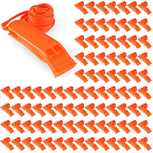 The Sotiff 100 Pieces Emergency Whistles are perfect for ensuring your safety during outdoor adventures such as camping, hiking, and boating. Made from reliable PP material, these whistles are sturdy and designed to withstand various weather conditions, meaning they won’t crack or freeze like metal counterparts. Featuring a thoughtful design with a clip and nylon lanyard, they can easily be secured to belts or life jackets, or worn around your neck for quick access. The dual sound chambers emit an impressive 120 decibels, ensuring you are heard over a mile away! With 100 whistles in vibrant orange, they are ideal for group outings or sharing with family and friends, and their high-pitched sound is also great for pet training. Don't compromise on safety; stay prepared with the Sotiff Emergency Whistles!